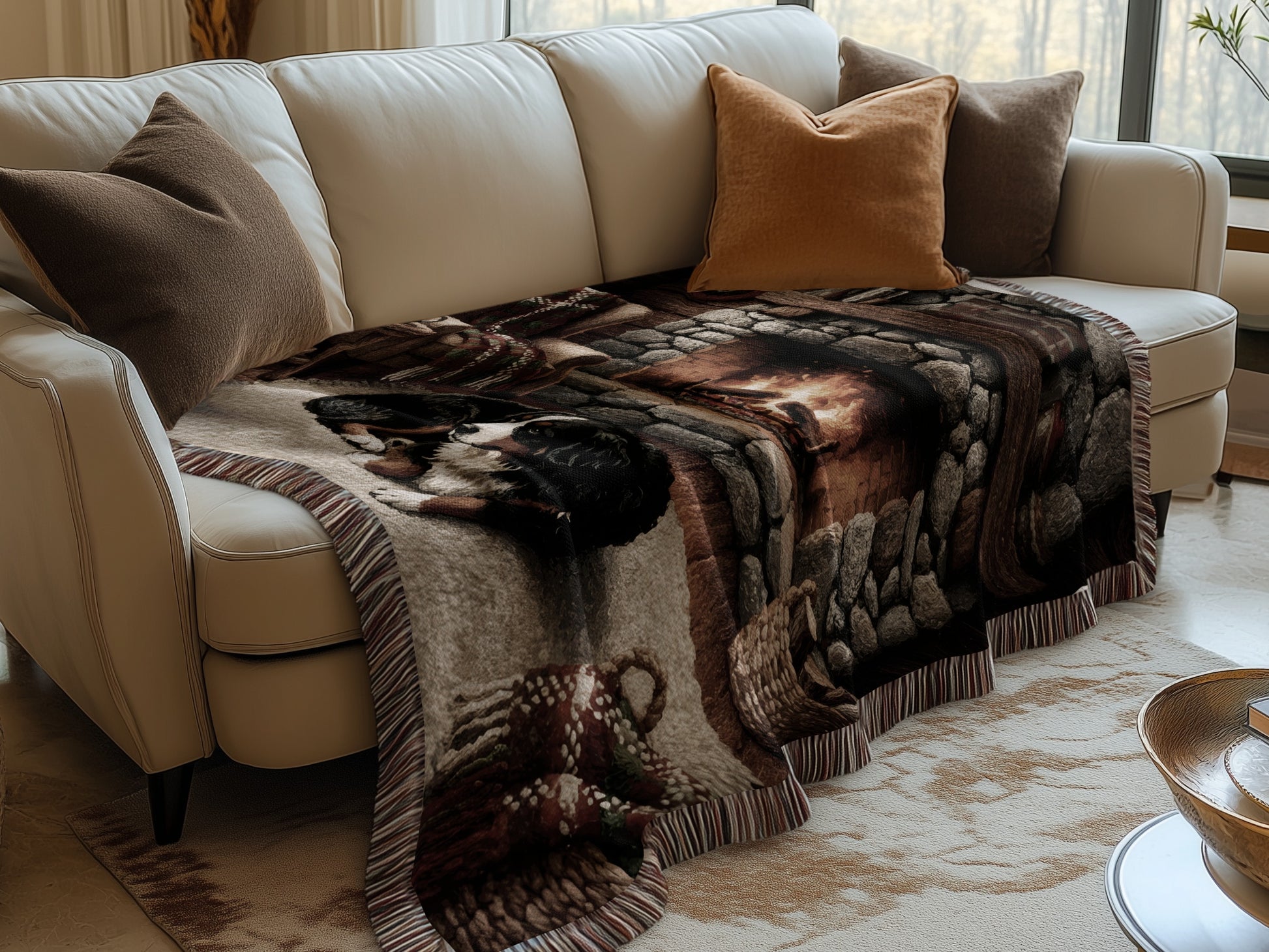 Enjoy cozy nights with our fireplace themed blankets! Perfect for dog lovers these comfy blankets bring warmth with a rustic cabin scene plus a Bernese Mountain dog companion.